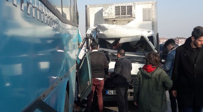 Kaza, 17.00 sıralarında D-100 karayolu Mimaroba Mevkii'nde meydana geldi. Silivri istikametinde ilerleyen M.Y.'nin kullandığı 34 DR 7959 plakalı kapalı kasa kamyonet, sürücüsünün direksiyon hâkimiyetini kaybetmesiyle, durakta yolcu almak için bekleyen 34 ZMG plakalı özel halk otobüsüne çarptı. Kazada kamyonet sürücüsü M.Y ve yanında bulunan M.Ç. yaralandı. İhbar üzerine olay yerine kısa sürede itfaiye, sağlık ve polis ekipleri sevk edildi. İtfaiye ekipleri, kamyonette sıkışan yaralı M.Ç'yi kurtardı. Sağlık ekipleri, olay yerindeki ilk müdahalelerinin ardından yaralıları ambulansla çevredeki özel bir hastaneye kaldırdı.