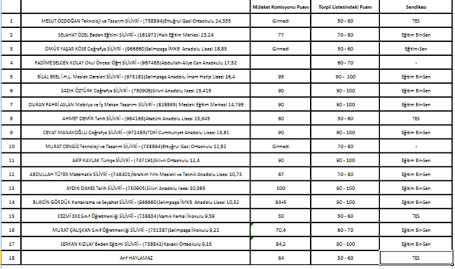 Türk Eğitim Sen 9 Nolu Şube Başkanı Enver Demir, Silivri'de müdür ve müdür yardımcılarıyla ilgili mülakat sınavında torpil yapıldığını iddia ederek, "MEB Yönetici Mülakat Sonuçları açıklandı ve gördük ki, mülakat komisyonları, Eğitim Bir Senin ellerine tutuşturduğu listeleri % 100 yakın onaylamışlar, paralel cemaatin elinden alınan ülkemizin kurumlarını paralel sendikaya teslim etmişlerdir" dedi.